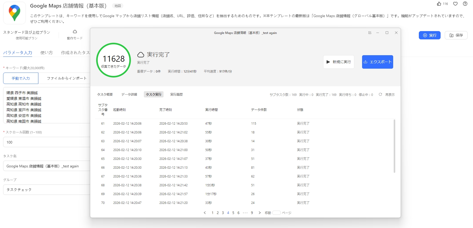 Googleマップ関連のテンプレートは、Octoparseの中でも特に利用者が多い看板テンプレートの一つであり、テンプレートの取得機能は常に改善・最適化されており、より効率的に情報を取得できます。
