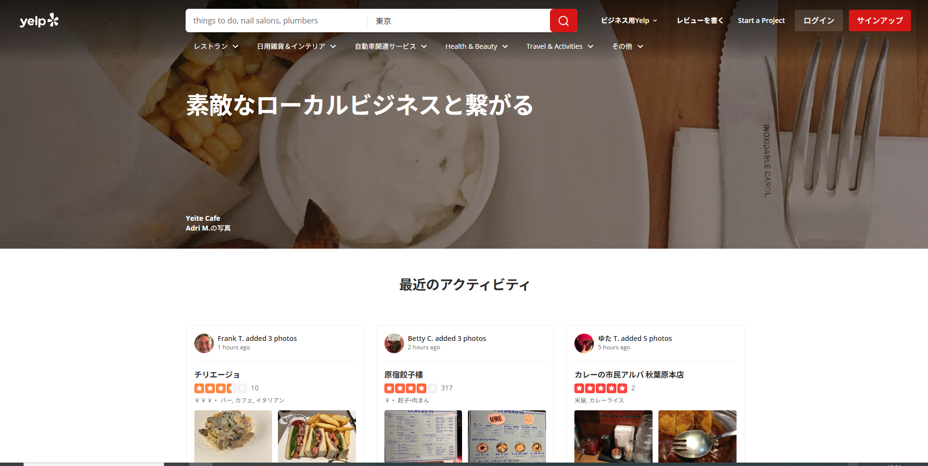 Yelp(イェルプ)は、アメリカ発のオンラインレビュー・評価プラットフォームで、ユーザーがレストラン、カフェ、ショップ、病院、サービス業などのローカルビジネスを評価し、レビューを投稿できるサイトです。2004年に創設され、現在では世界中で利用される主要なレビューサイトとなっています。日本には2010年に進出しました(出典:Yelp公式サイト)。