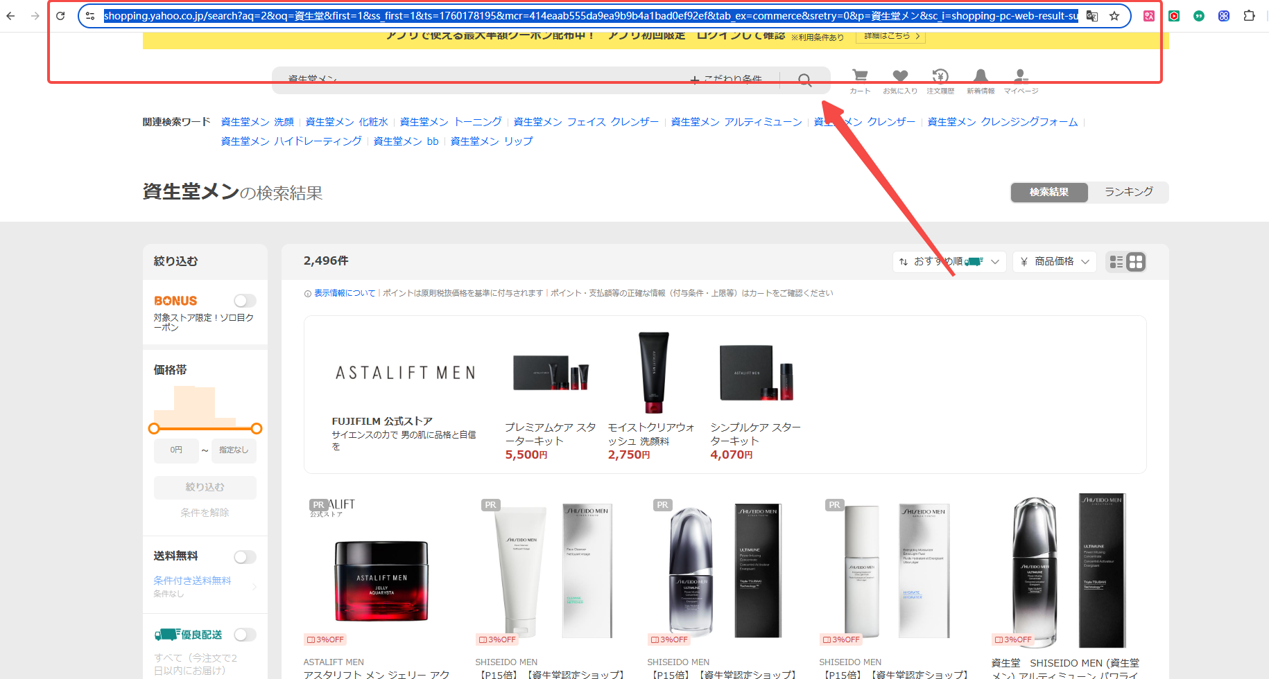 ステップ2.Yahoo shopping商品ページを開いて、リンクをコピー