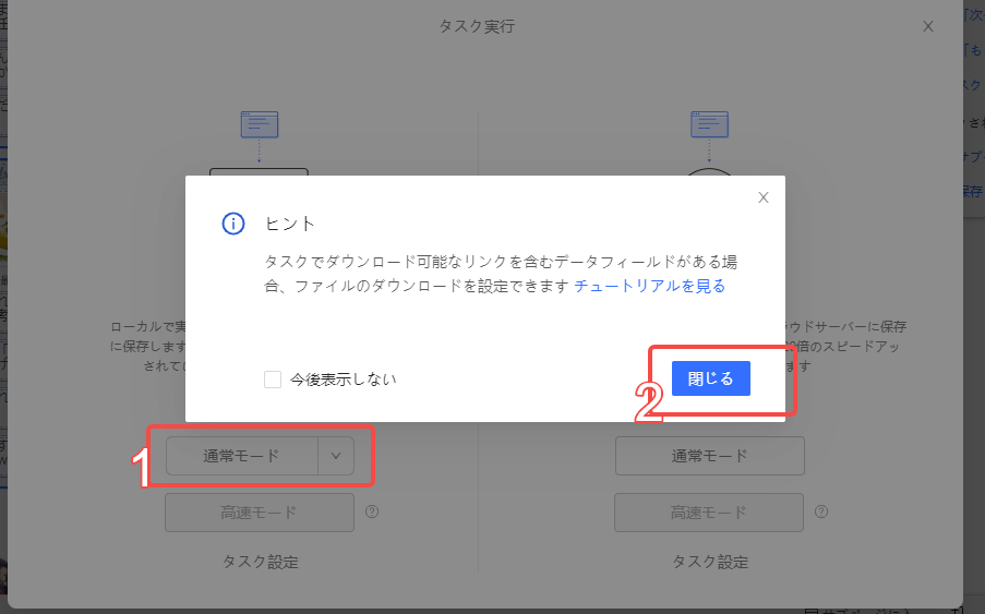 表示されるヒントは【閉じる】をクリックすればOKです。