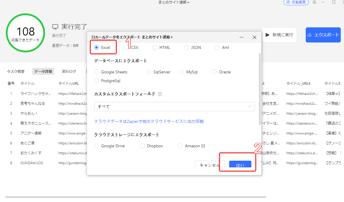 完了後は、Excel形式でデータをエクスポートして保存します。これにより、タイトル情報を一覧で確認できるようになります。