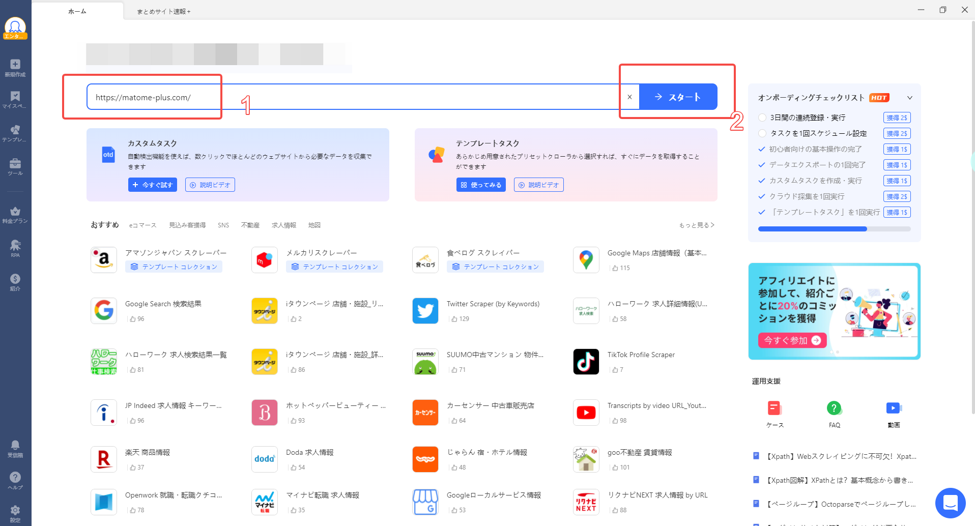 人気サイト向けテンプレート完備。クリック数回でデータ取得可能。