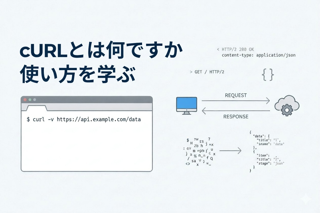 cURLとは何かを基礎から解説。APIリクエストの仕組み、POST/GETの違い、ヘッダーの意味を実例で理解。cURLの限界と、より実務的な自動化ツールの選択肢も紹介。